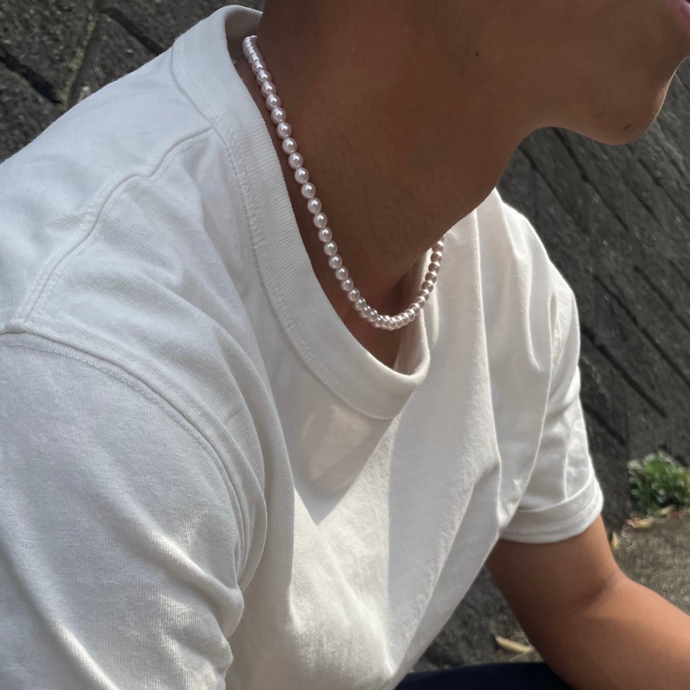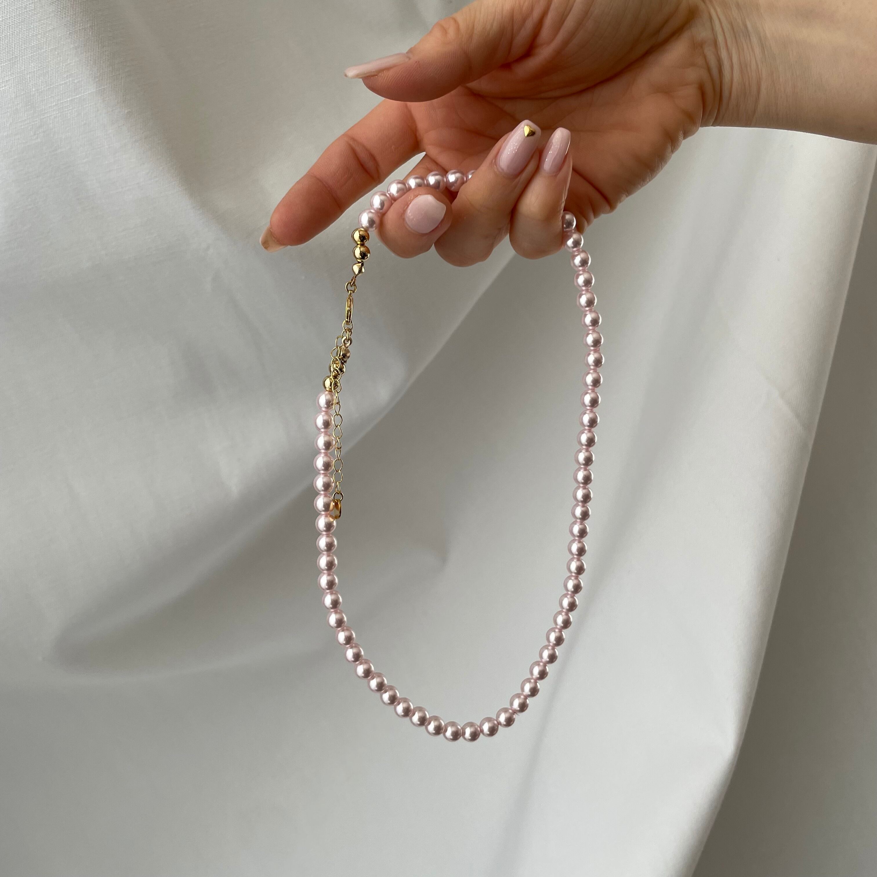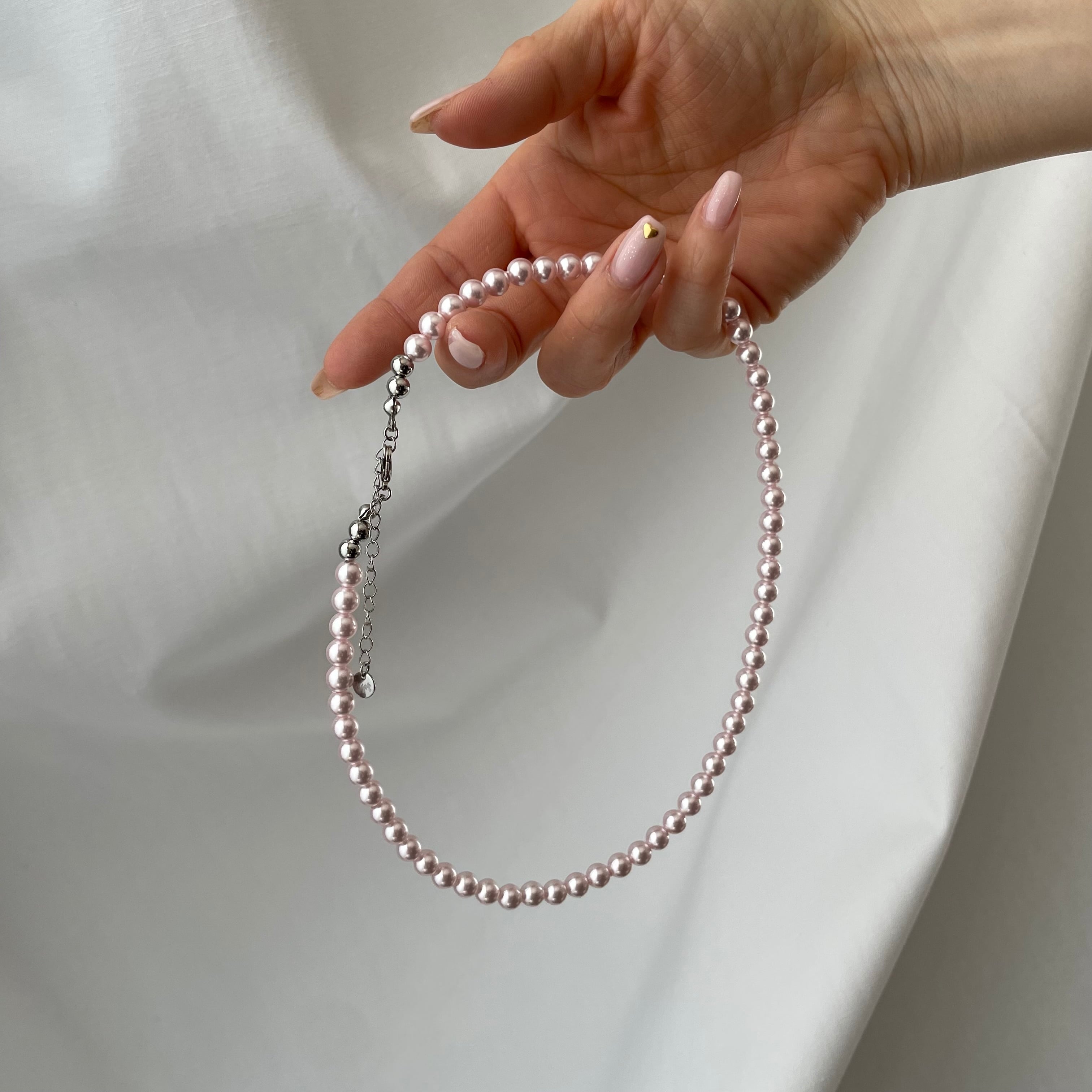 ピンクのパールネックレス。