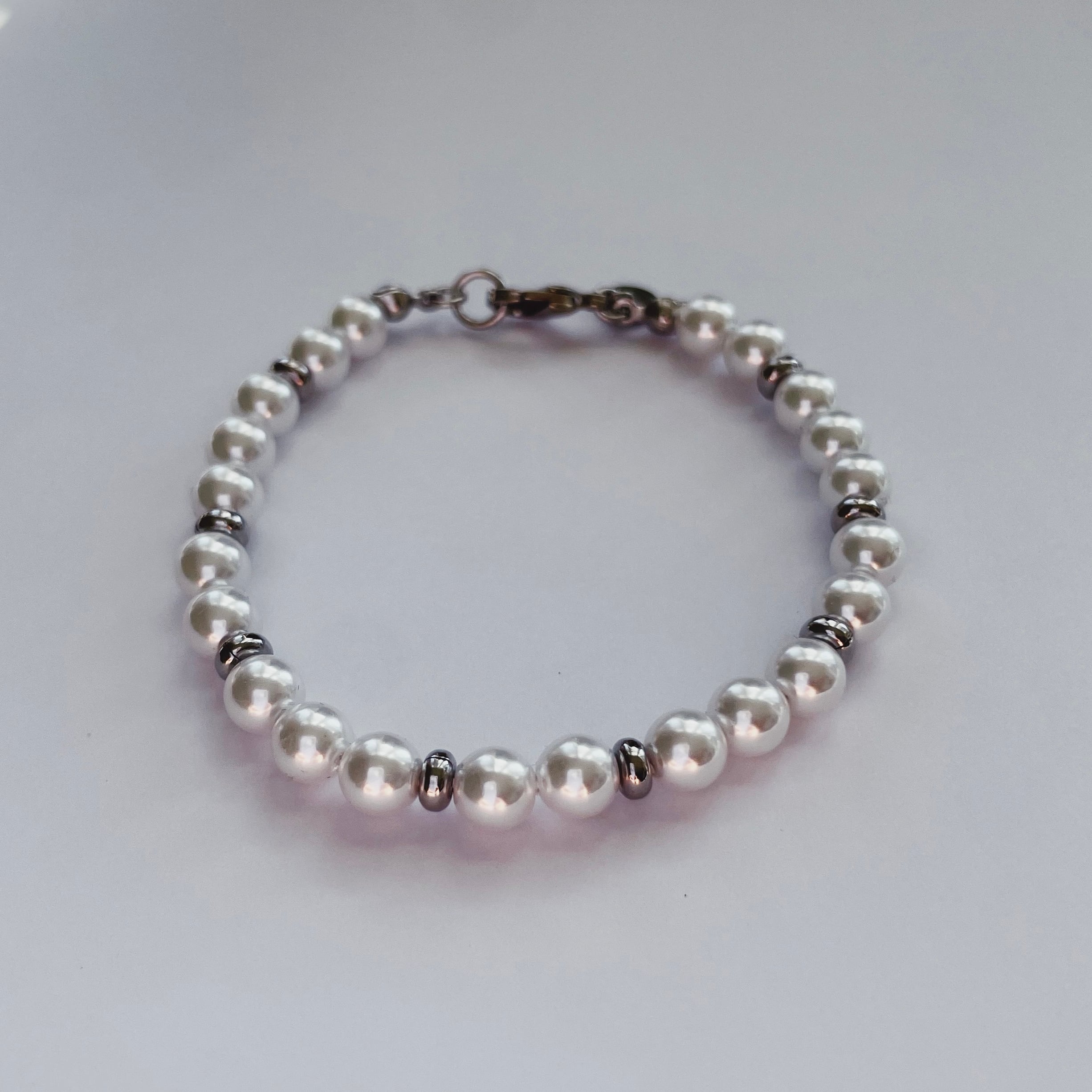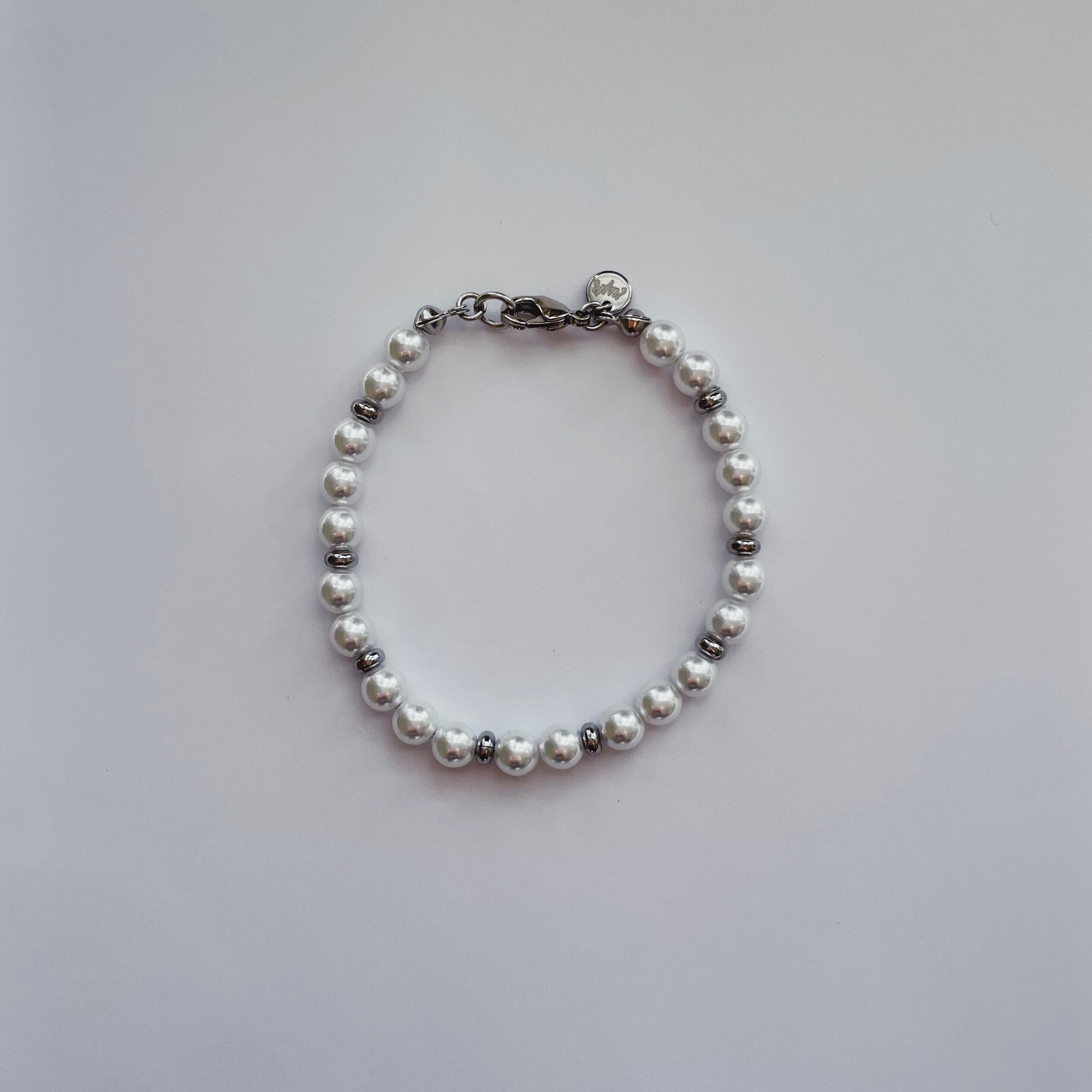 艶のあるパールに、さりげなくメタルパーツを挟むことで、