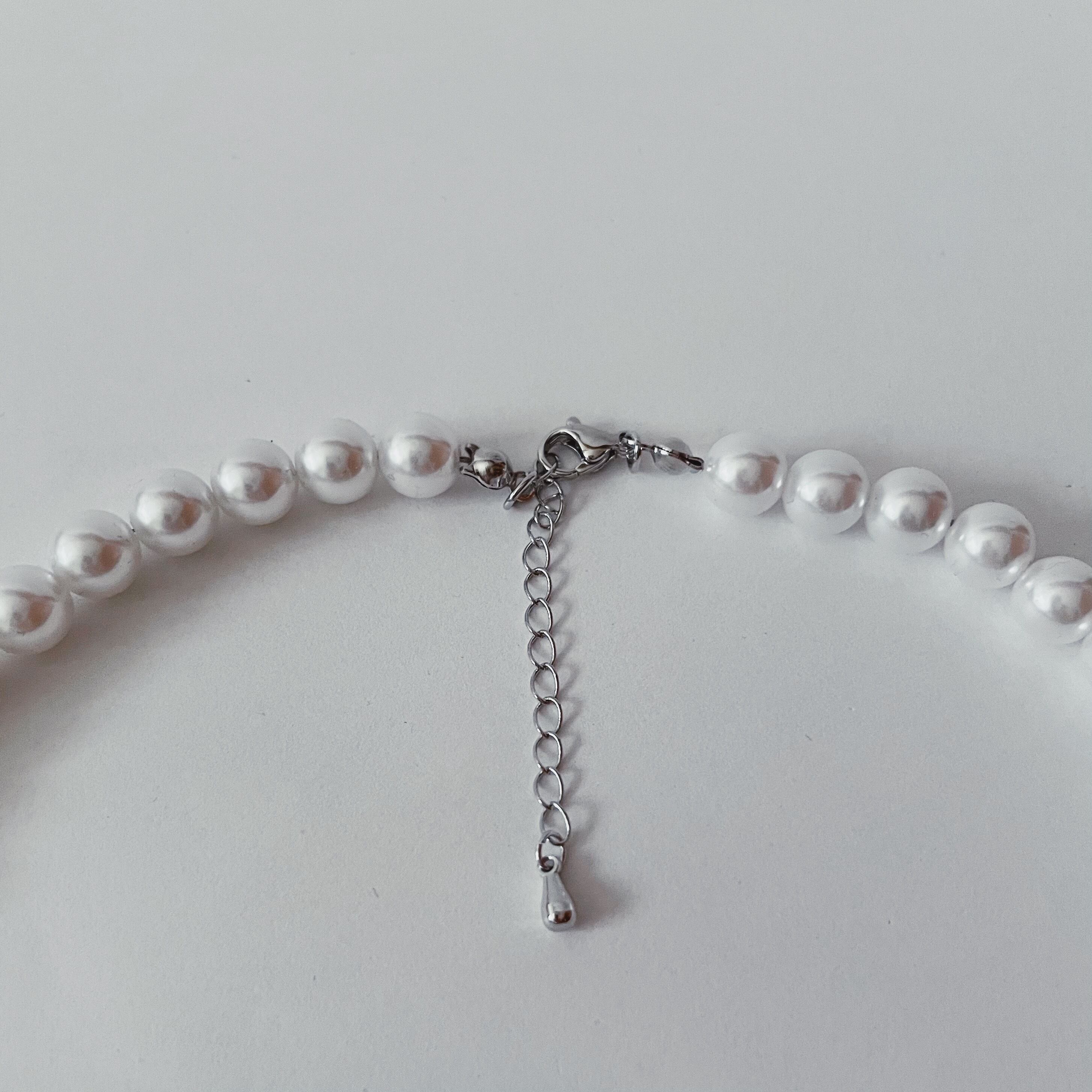 シンプルなホワイトパールだけのネックレス。